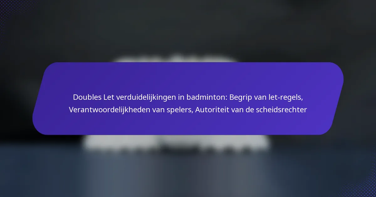 In badminton dubbelspel komt een let voor wanneer een rally wordt onderbroken en opnieuw wordt gespeeld vanwege specifieke omstandigheden, waardoor het essentieel is voor spelers en officials om de let-regels te begrijpen voor een eerlijke speelwijze. Spelers moeten zich bewust zijn van hun verantwoordelijkheden tijdens een let, waaronder het herkennen van de situatie, communiceren met hun partner en de scheidsrechter, en hun strategie aanpassen. Scheidsrechters hebben de autoriteit om de regels te interpreteren en definitieve beslissingen te nemen over let-calls, wat een aanzienlijke invloed heeft op de flow van het spel en de tactieken van de spelers.